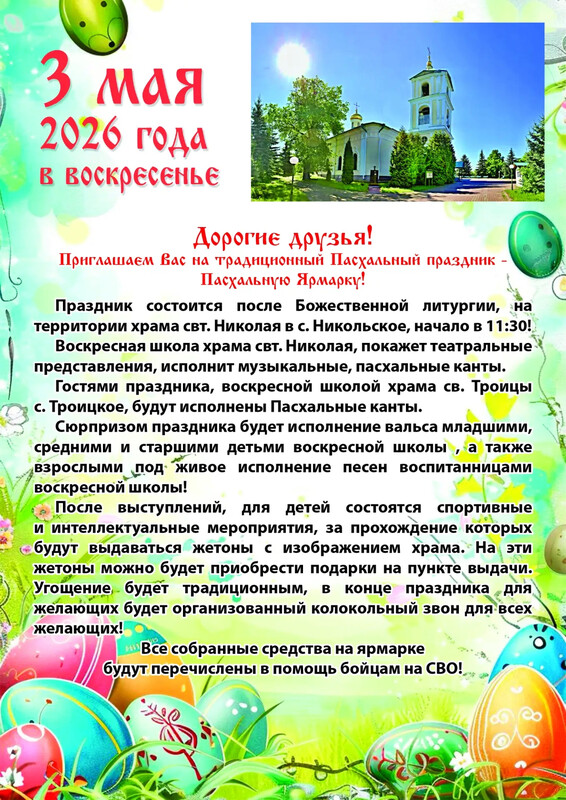 Храм свт. Николая Мирликийского Патриаршее подворье с. Никольское Расписание на апрель – май 2026г. |